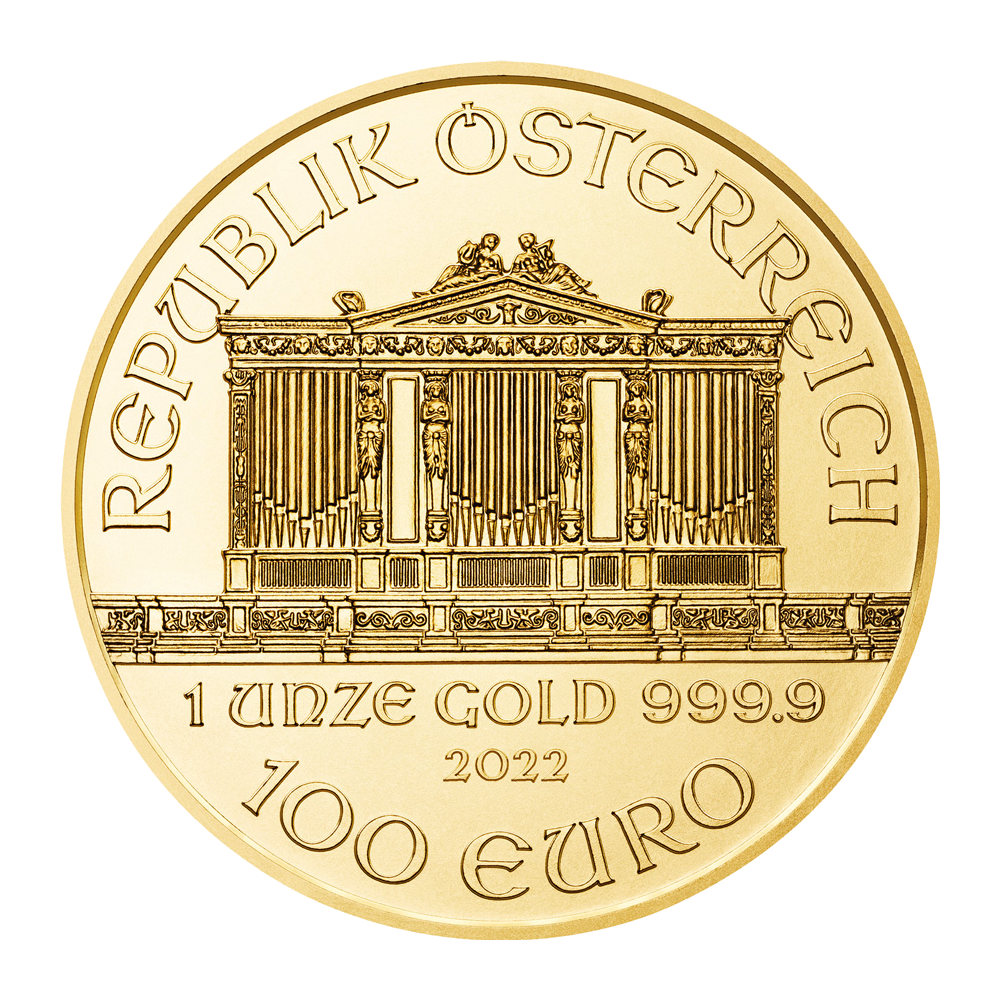 Seit 1989 gibt die Münze Österreich den Wiener Philharmoniker in Gold aus. Da jedes Jahr hohe Stückzahlen geprägt werden und das Sujet auf der Vorderseite der Münze immer gleich bleibt, ist die Münze nur mit einem geringen Aufgeld versehen. Deshalb gilt sie als eine der preiswertesten Goldunzen überhaupt. Der Euro-Nennwert des Wiener Philarmonikers beträgt 100 Euro.